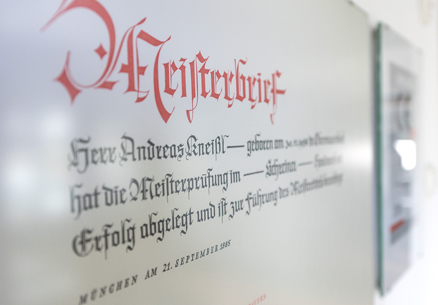Tradition verpflichtet. So steht die Schreinermanufaktur Kneißl bereits seit 1959 für traditionelle Handwerkskunst. Von Generation zu Generation, von Meister zu Meister, wird das profunde Wissen weitergegeben und ausgebaut. Damit stets ausgezeichnete Meisterwerke entstehen können.